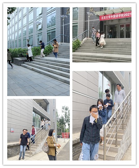 楼内师生员工和物业人员相互配合,按照事先制定的《beat365平台唯一官网消防疏散预案》,全体人员在三分钟内顺利完成了疏散逃生,包括当时正在楼内进行科研、教学的老师,小组研讨的同学,正在地下二层图书分馆阅读的师生。大家都用学院提前发放的消防湿毛巾捂住口鼻,伏低身体,根据安全出口指示标识指引,按照远离起火点和就近原则,分别从南侧室内楼梯和北侧室外楼梯迅速有序地离开了大楼,到达指定集合地点。