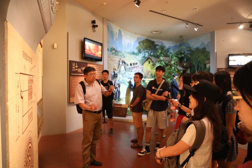 20日下午,北大实践团的师生来到广西民族博物馆进行参观和文化考察。同学们在老师的带领下参观了“家园”、“霓裳羽衣”、“匠心神韵”与“和谐乐章”等展区,通过带队老师和工作人员的讲解加深了对广西各少数民族的宗教信仰、文化习俗以及古代中国与东南亚地区交流的了解,特别是馆藏的铜鼓文化展览很好地展现了古代中国与东南亚的文化交流。师生们在欣赏这些艺术作品的同时,也从各自的专业角度出发,思考和讨论这些展出的器物与它们所处历史时代、社会环境以及与整个人类发展进程的关系,尝试从更为宏阔的视野去理解文化现象的产生与变迁,从而释读中国与东南亚的文化关联和跨境民族的文化传统。