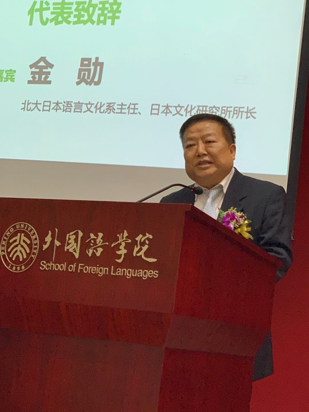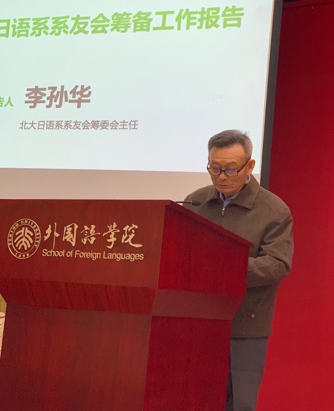 北大日本语言文化系主任、日本文化研究所所长金勋在致辞中指出日语系系友会的成立是具有里程碑意义的重大事件,她的成立是母校情、师生情、同窗情的凝聚和升华,她会成为所有日语系系友厚重而坚强的后盾。金主任指出,日语系系友会具有平台高、领域广、能量大、责任重的特点,今后北大外文楼218室作为日语系系友会常设联络地点,金主任呼吁广大系友,常回母校走走,为日语系的发展建言献策,共同携手把日语系系友会建设好。