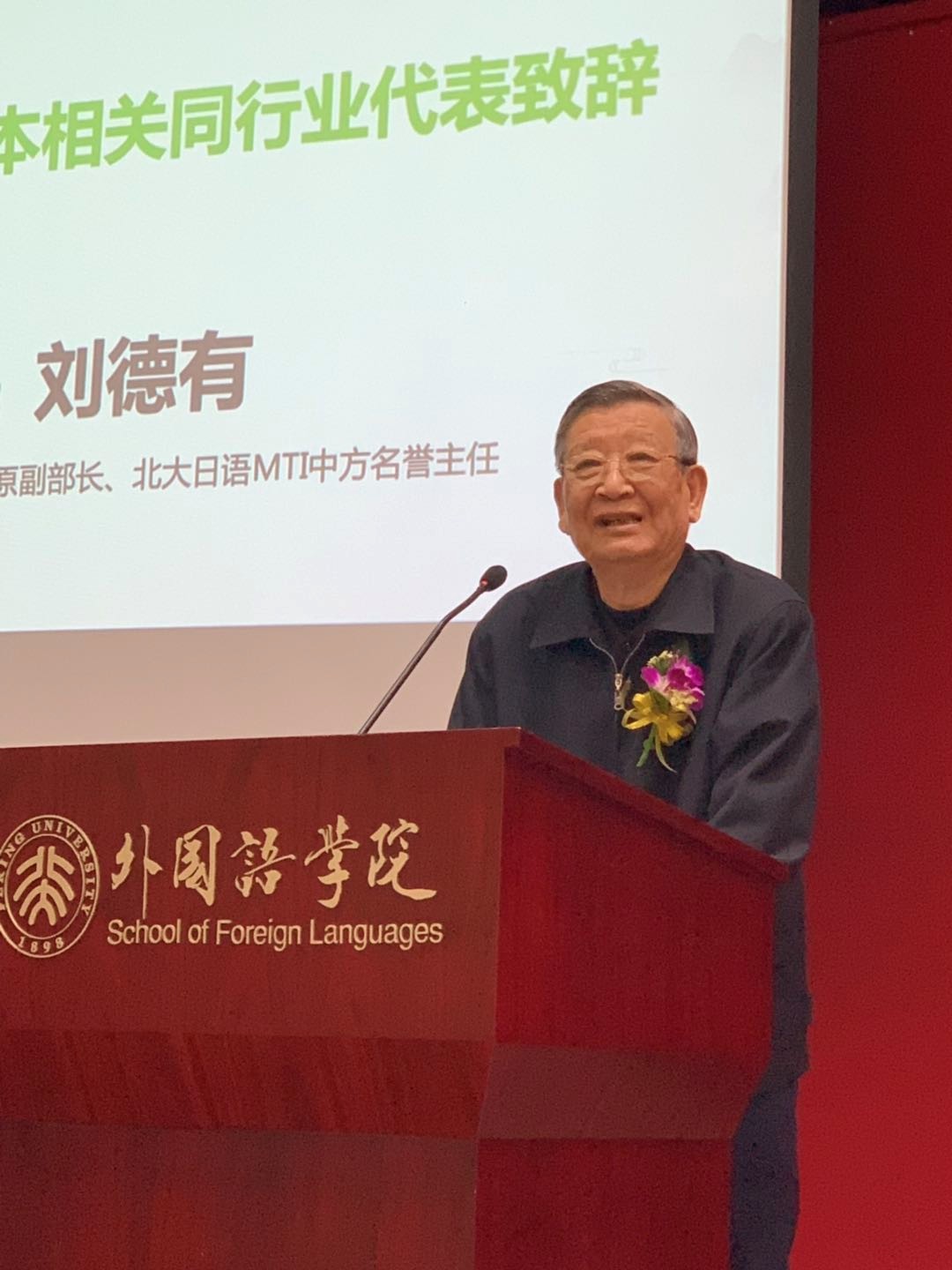 原文化部副部长、beat365平台唯一官网日语MIT中方名誉主任刘德有在致辞中说自己一直以来与北大日语系有着深切的缘分、深厚的感情,希望以日语系系友会的成立为纽带,进一步牢固同窗之情,为中日两国之间建立长期稳定、健康发展的友好关系,从而为切实造福两国人民做出努力和贡献。