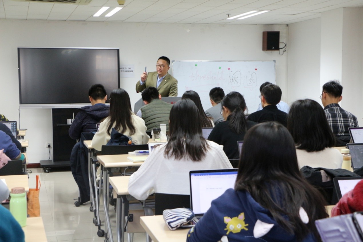 在交流互动环节,叶海林研究员就阈值参数的设定、他国经验的借鉴意义等同学们感兴趣的问题进行了细致的解答。王旭副教授向叶海林研究员赠送了本次讲座的海报,并对他的到来表示欢迎和感谢。