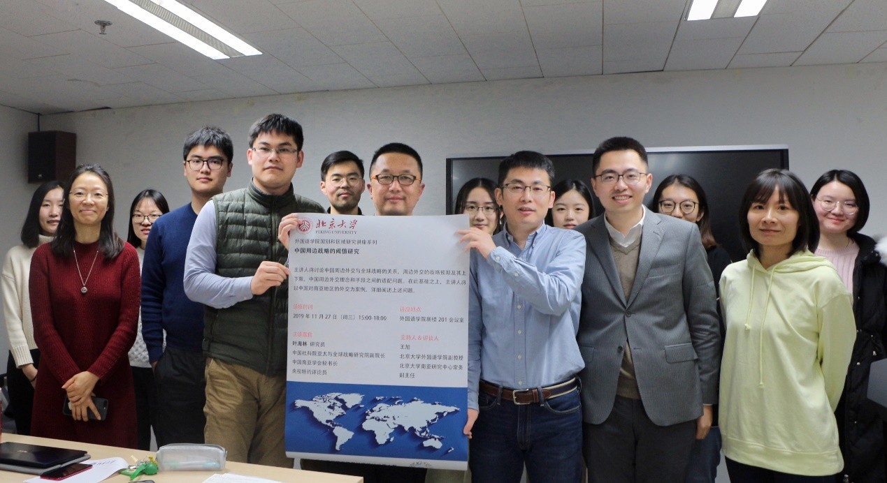 2019年11月27日下午,beat365平台唯一官网国别和区域研究系列讲座邀请中国社科院亚太与全球战略研究院纪委书记、副院长叶海林研究员以“中国周边战略的阈值研究”为题,为同学们带来了一场学术讲座。