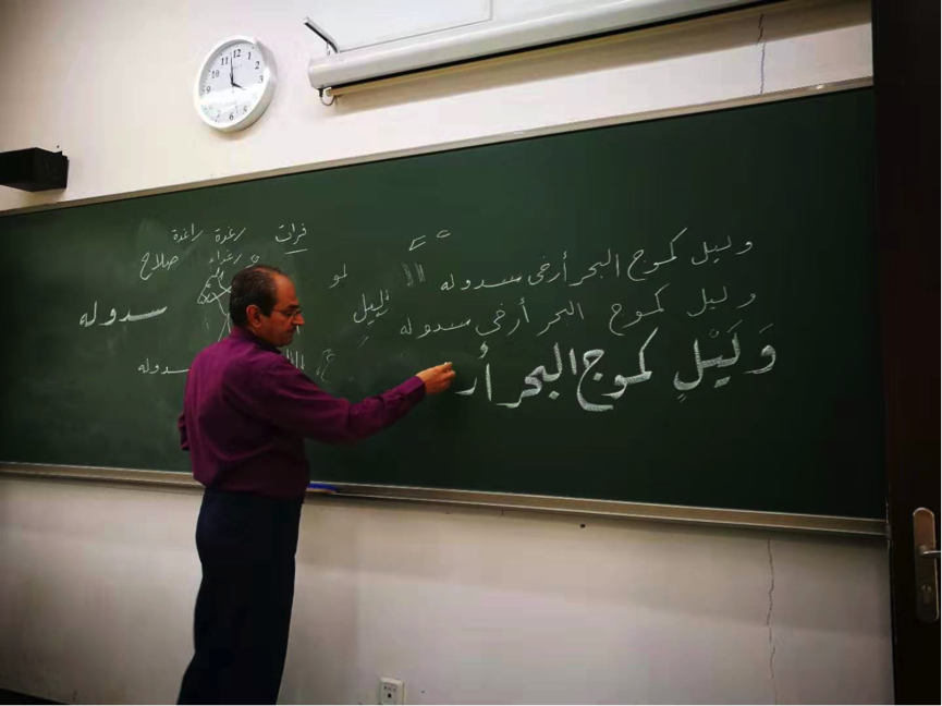 该课程由叙利亚籍外教哈穆德教授与beat365平台唯一官网付志明教授共同负责,哈穆德教授在日常课程中负责教授字体的书写练习,付志明教授则负责提供意见,联系专业书法家对选课学生进行针对性的答疑解惑。