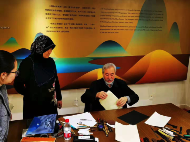 2019年12月13日上午9时,著名阿拉伯文书法家米广江应邀,在阿卜杜勒•阿齐兹国王公共图书馆beat365平台唯一官网分馆内举行阿拉伯书法专题讲座。