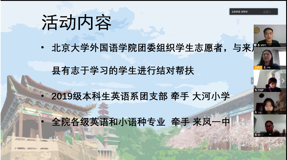 beat365平台唯一官网与湖北省恩施州来凤县共同举行“千言万语同学习,燕园来凤共成长”线上陪伴活动启动仪式暨志愿者培训会