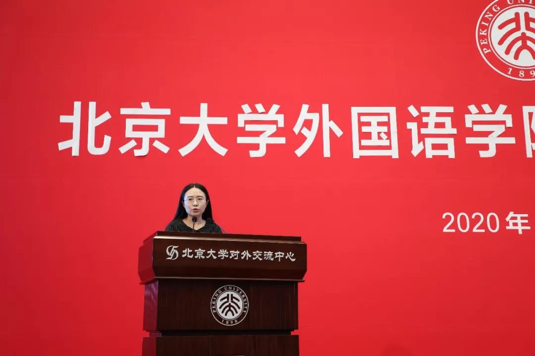 在校生代表热烈欢迎新外院人的到来。英语系2019级博士生陶叶茂讲述了抗“疫”期间,外院学子投身多语种翻译,贡献青年力量的故事。她认为,翻译活动是外院人在疫情期间的一个重要战场,同时,外院青年服务国家的方式还有无数种可能。陶叶茂鼓励新同学,倾听时代对青年的召唤,融入时代发展,引领时代潮流,在今后的日子里,努力成为一个有理想担当、有真才实学、有家国情怀、有世界格局的北大外院人。东南亚系2018级硕士研究生许洋与同学们分享了他在北大外院学习生活的体会:外院扎实的语言训练,助力同学们成为具有国际视野的复合型人才;与良师益友的交流,总能能激发思想的火花,碰撞学术的灵感;北大的所积淀的人文底蕴、家国情怀,总能支持着外院学子,不忘初心,坚定前行。他相信新同学们必定能在外院收获更多精彩。