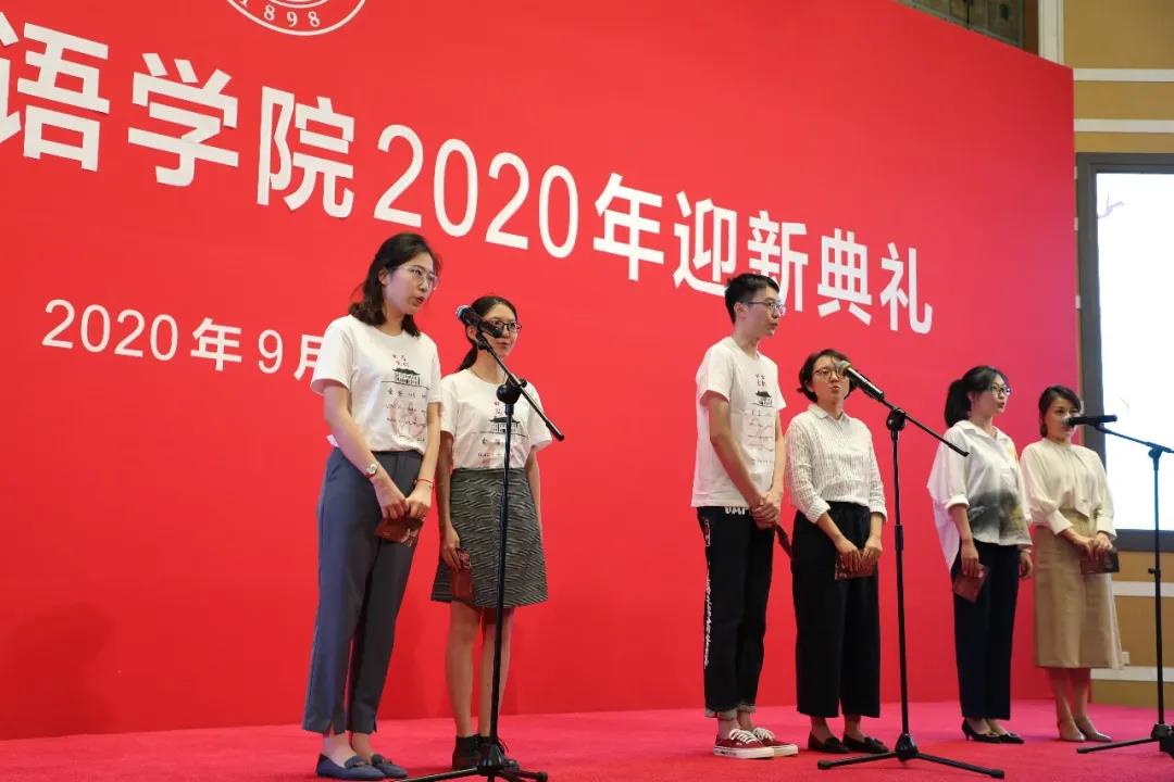 新生代表们表达了对外院新生活的无限期待。俄语系2020级硕士研究生尚乐敏提到,语言学习是一个“认识”的过程。学习语言,给她带来对于世界和自我的更全面的认识。她希望与同学们一起,在外院共同学习、共同成长,成为一名对中国社会、世界格局的观察者与反思者;更成为一名讲述者,将中国故事讲出格调、讲出风采。德语系2020级硕士研究生张皓莹以德语戏剧《智者纳旦》作引,分享自己与师友交流中收获的心得。她认为,在追求真理的过程中,要时刻保持谦逊与好奇,超越偏见、求同存异,并在实践中检验真理。她以作者莱辛的话“重要的不是拥有真理,而是不懈追求真理的努力”与同学们共勉。