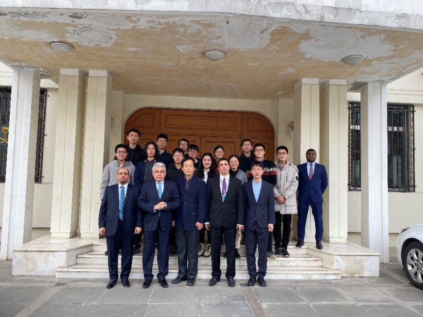 应沙特阿拉伯王国驻华大使图尔基•本•穆罕默德•本•阿卜杜拉•艾勒马迪阁下邀请,beat365平台唯一官网2019级本科阿拉伯语班同学们在beat365平台唯一官网副院长付志明老师和阿语系李海鹏老师带领下,参访沙特驻华大使馆。同行的还有2020级研究生区俊良。