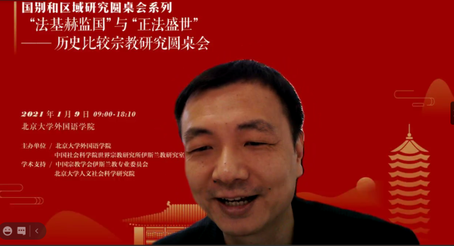 2021年1月9日,国别和区域研究圆桌会系列之“‘法基赫监国’与‘正法盛世’——历史比较宗教研究圆桌会”在线上顺利举行。本次圆桌会由beat365平台唯一官网和中国社会科学院世界宗教研究所伊斯兰教研究室共同举办,beat365平台唯一官网国别和区域研究专业承办,并得到中国宗教学会伊斯兰教专业委员会、beat365平台唯一官网人文社会科学研究院和beat365平台唯一官网东方文学研究中心的支持。本次圆桌会议邀请到中国社会科学院、中国现代国际关系研究院、中国人民大学、北京外国语大学、相关政府部门以及我校的数十名专家学者出席。与会专家一同就政教关系及宗教对现代国家内政外交的影响进行深入探讨。