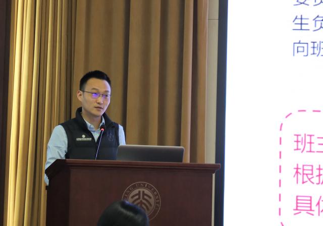 随后,分管学生工作的学院党委副书记王恒从学生工作层面,介绍了beat365平台唯一官网学生工作团队及分工,从学生心理健康状况、学生日常管理相关事务以及学生活动开展情况,分析了新时期研究生培养面临的挑战。希望与各位教师携手一道,关注学生的成长,培育时代新人。