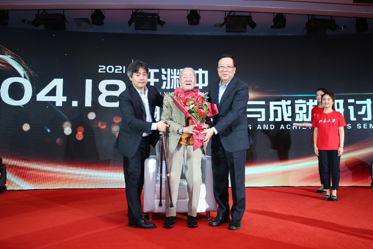 校长郝平向许渊冲先生献上鲜花