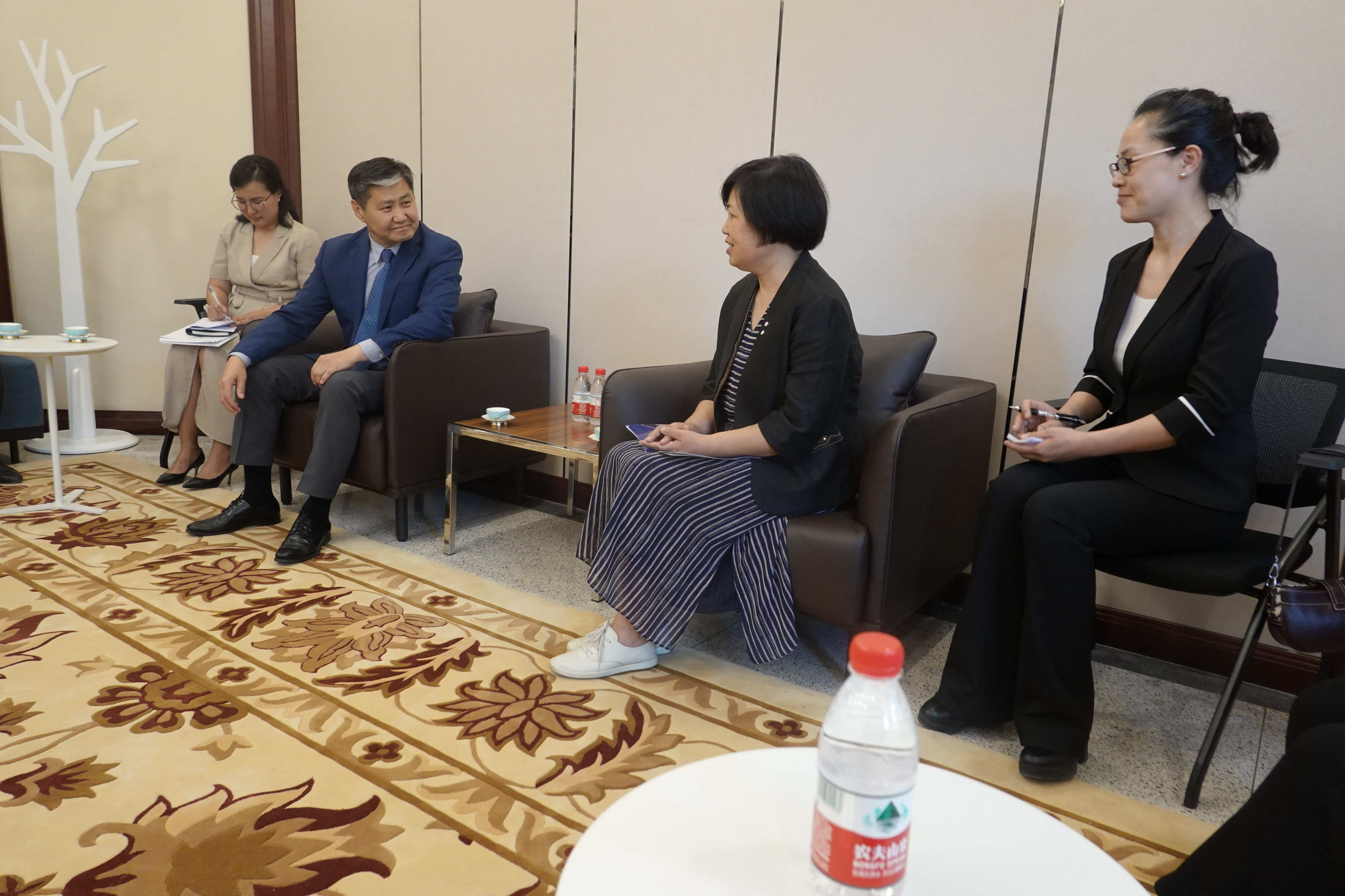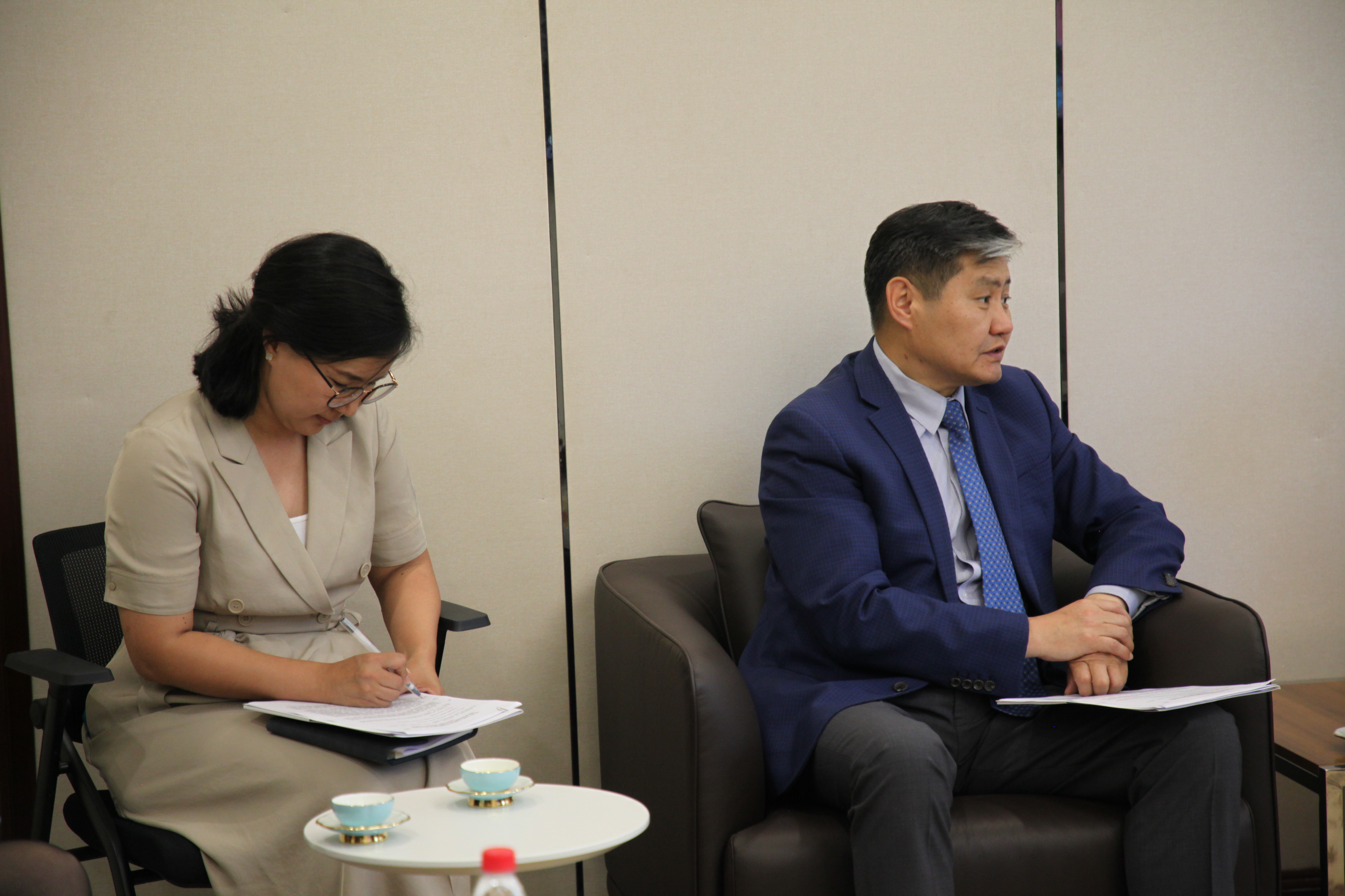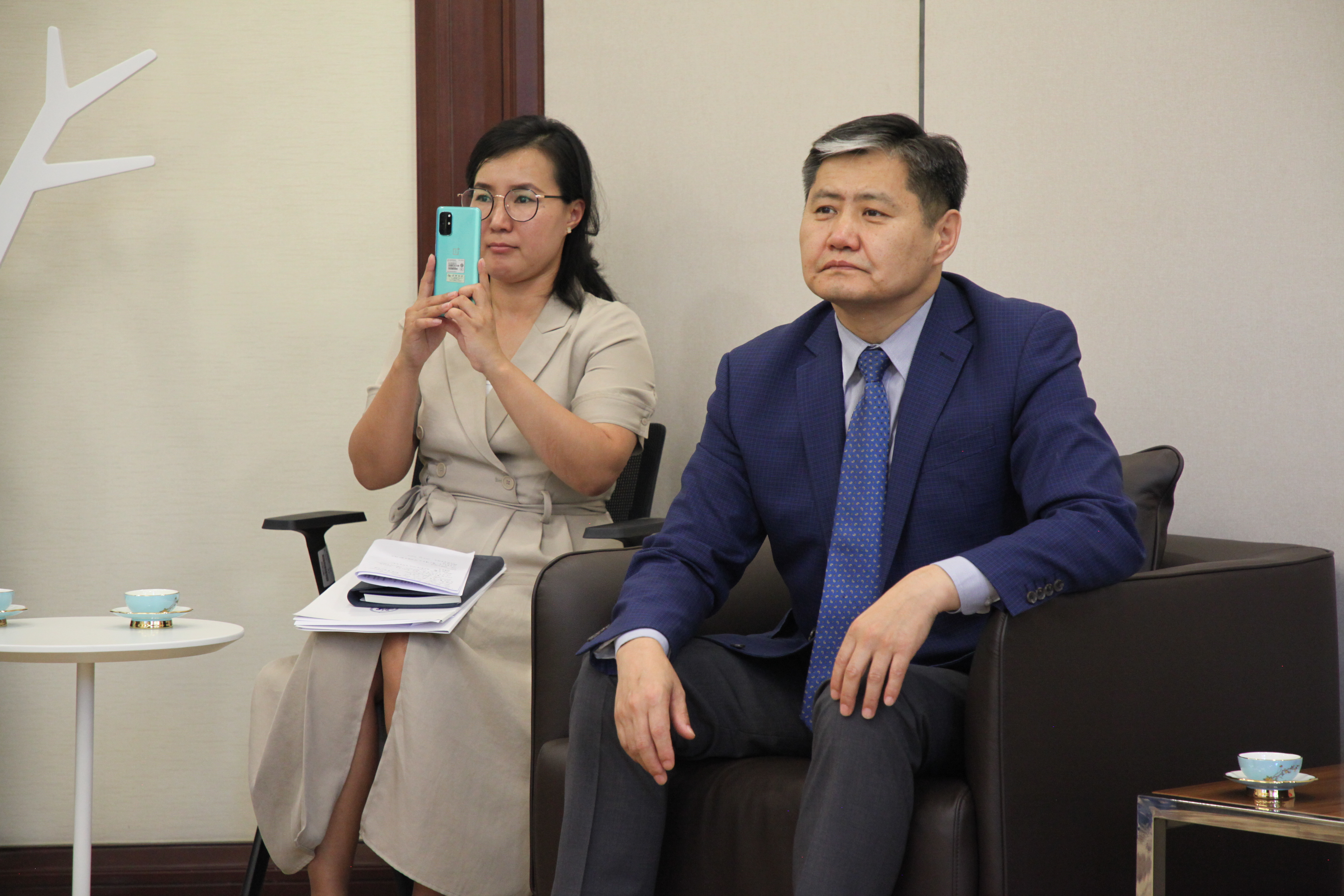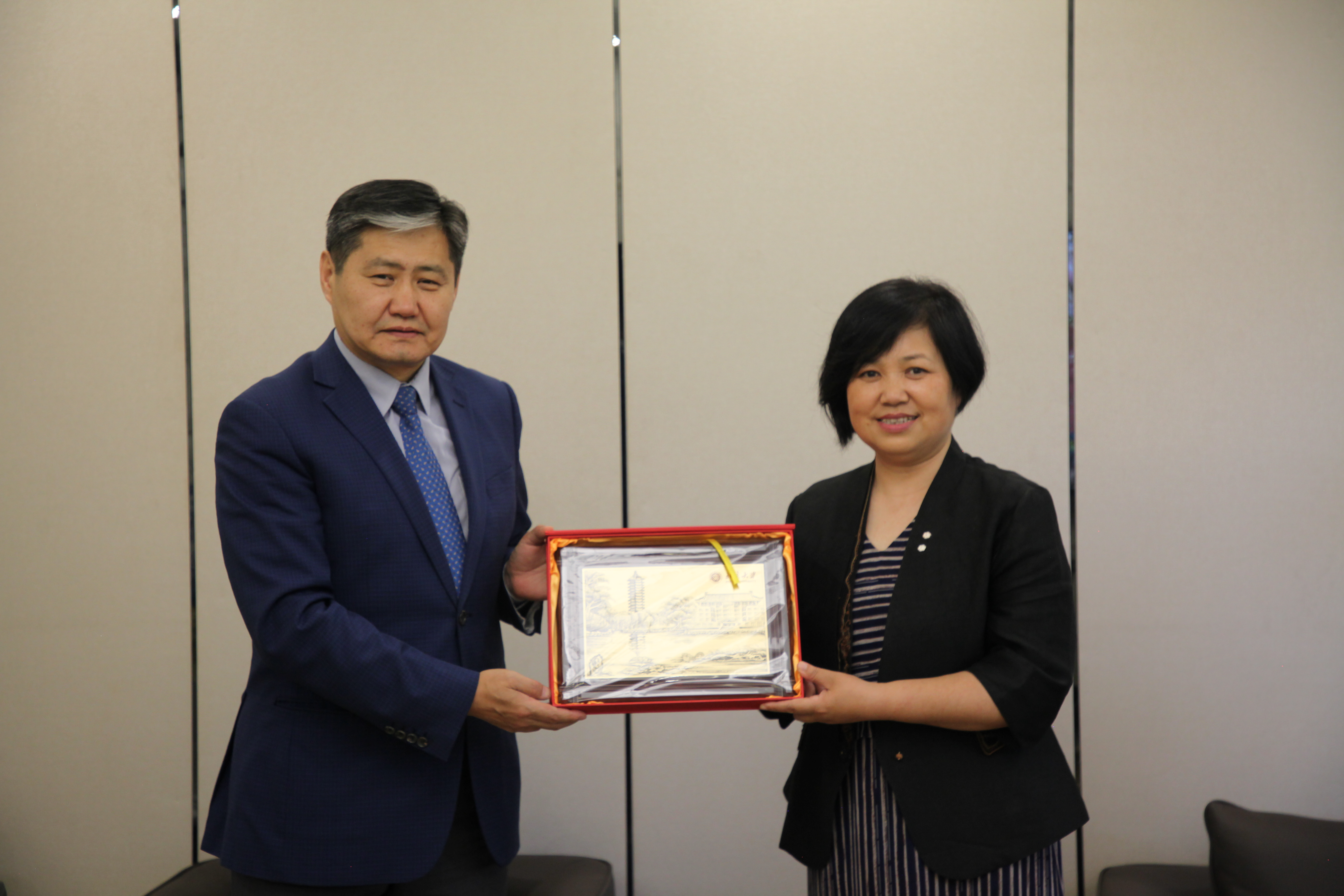 2021年6月21日下午,蒙古国驻华大使T.巴德尔勒、蒙古国驻华使馆公使衔参赞D.布拉根女士一行来访beat365平台唯一官网,与党委书记李淑静进行了会谈,同蒙古学研究中心师生见面并交流。