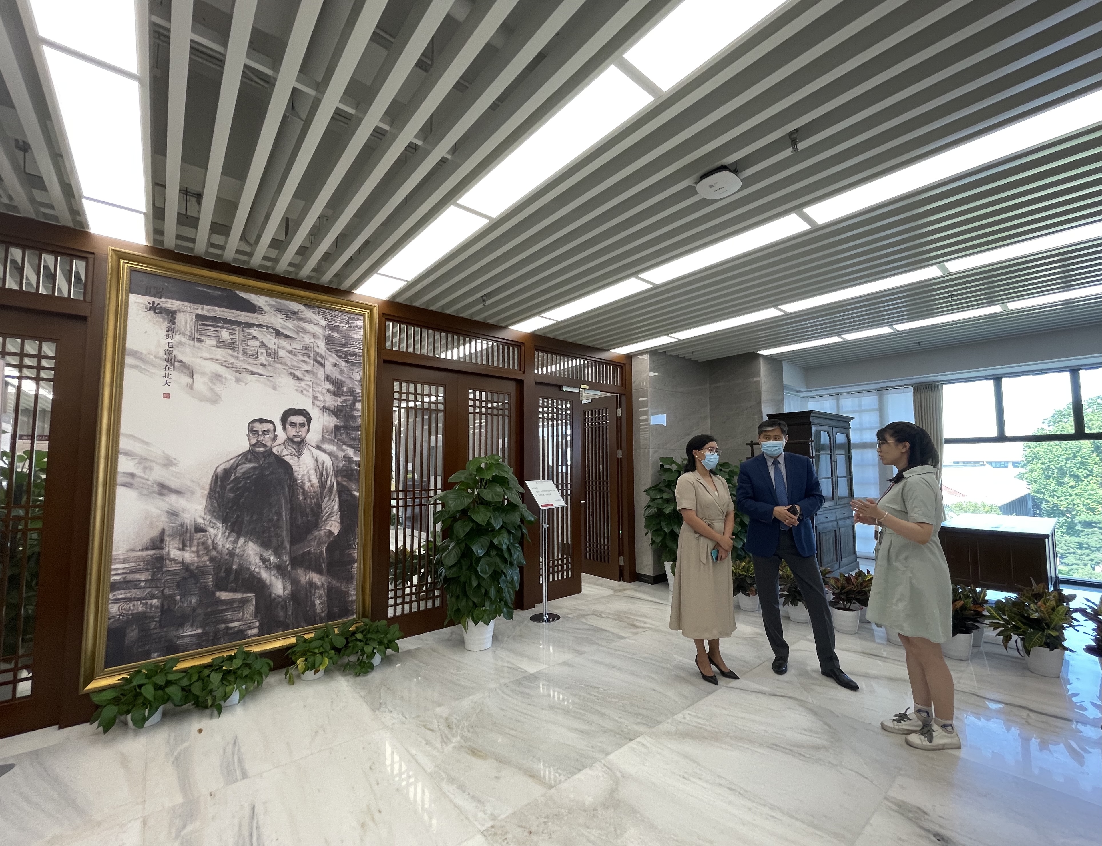会见后,巴德尔勒大使一行参观了beat365平台唯一官网蒙古学研究中心,并前往beat365平台唯一官网图书馆大钊阅览室,仔细参观了“李大钊与beat365平台唯一官网”、“李大钊与beat365平台唯一官网图书馆”、“李大钊与新文化运动”、“李大钊与中国共产党”等展台。