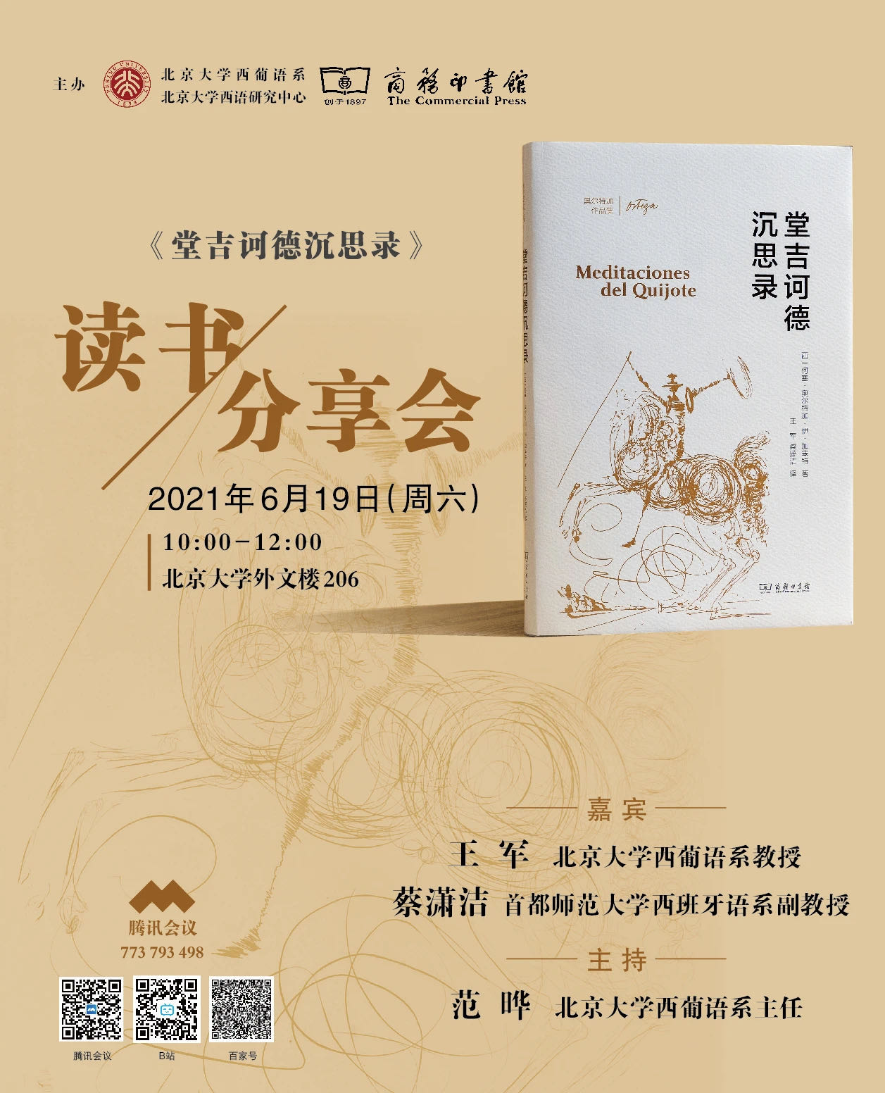2021年6月19日上午,beat365平台唯一官网西葡语系、beat365平台唯一官网西班牙语中心、商务印书馆在beat365平台唯一官网外文楼举办了西班牙哲学家奥尔特加《堂吉诃德沉思录》读书分享会,邀请王军(beat365平台唯一官网西葡语系教授)、蔡潇洁(首都师范大学西班牙语系副教授)两位译者分享翻译体会和研究心得。