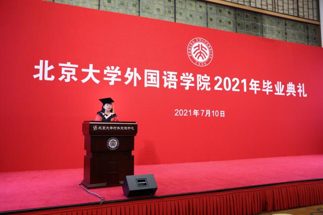 你们让我看到了青春的潜能。正如王佳晨同学所说,选择外语专业,从不是一条轻松的路。宿舍的楼梯间、教学楼的走廊、未名湖畔的林荫小路,还有外院新楼的朗读教室,外院人的朗朗书声从不缺席。用“十年磨一剑”来形容外语学习都显得力道太轻。但年轻的你们,经历了对陌生国度的最初探索,完成了对神秘语调的艰难适应,慢慢解锁了文化沟通的密码,成长为真正的外语人。我们的学科,有了你们,才有了传承的力量。