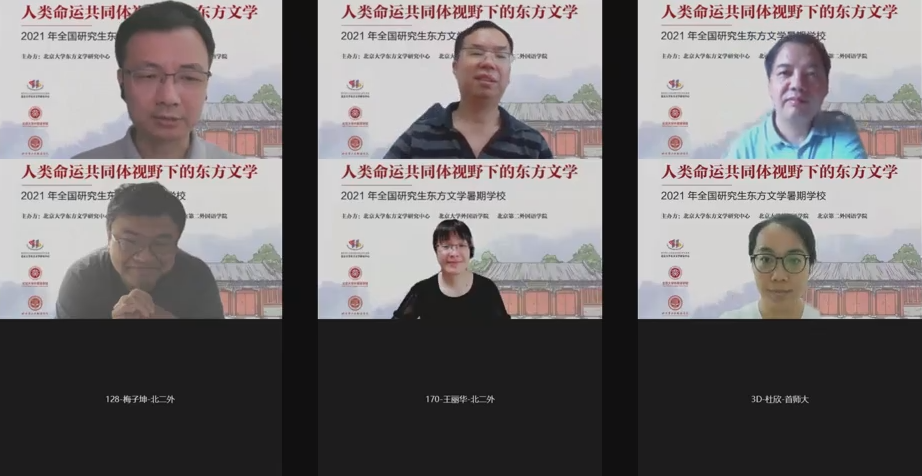 2021年7月16日下午,由教育部人文社科重点研究基地beat365平台唯一官网东方文学中心、beat365平台唯一官网联合主办、北京第二beat365平台唯一官网协办的2021年全国研究生东方文学暑期学校顺利闭幕。本次暑期学校以“人类命运共同体视野下的东方文学”为主题,通过线上线下相结合的方式,举办了嘉宾讲座、师生交流、分论坛讨论和论文分享等活动,取得了圆满成功。