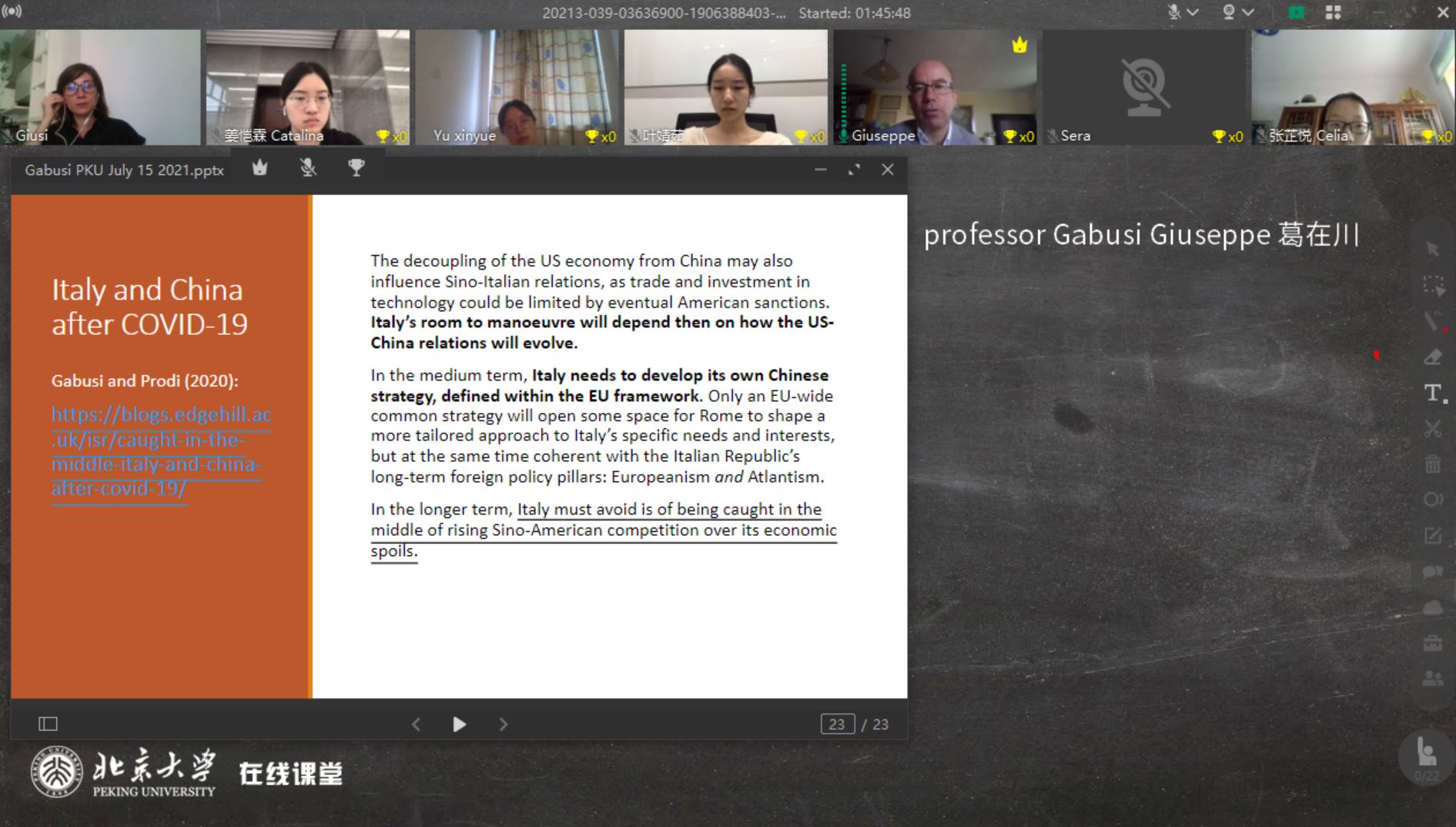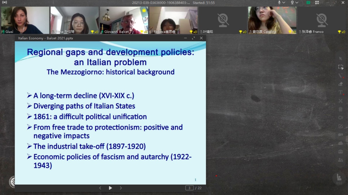 2021年7月5日至7月19日,beat365平台唯一官网“意大利语言和文化暑期课”顺利举办。因疫情原因,本次暑期课以线上授课的形式进行。课程由语言基础模块及历史社会文化讲座模块两部分构成,其中语言部分主要教授学生意大利语日常交流的相关内容,让学生对意大利语有初步了解,熟悉发音并掌握基础的意语表达;文化讲座部分由来自beat365平台唯一官网和都灵大学不同背景的多位老师担任,内容涉及意大利历史、文学与艺术、当代意大利政治经济及社会等多方面话题。来自beat365平台唯一官网、元培学院、光华管理学院、物理学院、哲学系、社会学系、医学部等院系的同学参加了本届暑期课,课程同时针对校外开放,来自国内外不同高校及不同学习背景的学员也参与了此次课程。