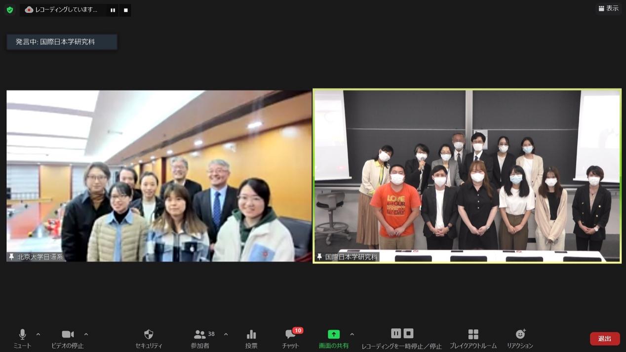 会议后半部分,来自两校的四名研究生进行了发言。首先,日本明治大学博士生星川睦以《近现代和语形容词的意义变化及其与汉语的关系——以“新しい”、“厳しい”和“幸せ”的历史记述为中心》(近現代における和語形容詞の意味変化と漢語との関係について-「新しい」「厳しい」「幸せ」の語誌から-)为题进行了发言,考察了上述词汇在近代的出现与使用情况,针对其使用情况的变化思考并推测其背后的原因。然后,beat365平台唯一官网博士生罗婷婷以《化妆还是化粧?——以表记的成立为中心》(《「化妆」か「化粧」か——表記の成立を中心に)》进行了发言,结合古代、近代与现代汉语使用情况,考察了汉语词汇“化妆”与日语词汇“化粧”之间的相互关联,分析了“化妆”一词的演变过程。接着,明治大学博士生吴梅进行了题为《以中文为母语的日语学习者对和制英语进行意义推测之难易的影响因素——通过复合词的词汇特征进行考察》(中国語を母語とする日本語学習者の和製英語の意味推測の難易を分ける要因-複合語の語彙的特徴からの考察-)的发言,使用英语考试成绩的数据,具体分析了影响中文母语的日语学习者对和制英语的理解以及影响考试成绩的主要因素。最后,刚获得beat365平台唯一官网博士学位的孙羽以《接续词“だったら”的谈话标识化》(接続詞「だったら」の談話標識化)为题进行了发言,结合语料库中“だったら”相关例句与上下文情况,从语义等角度出发,探讨“だったら”如何起到转移话题的作用。