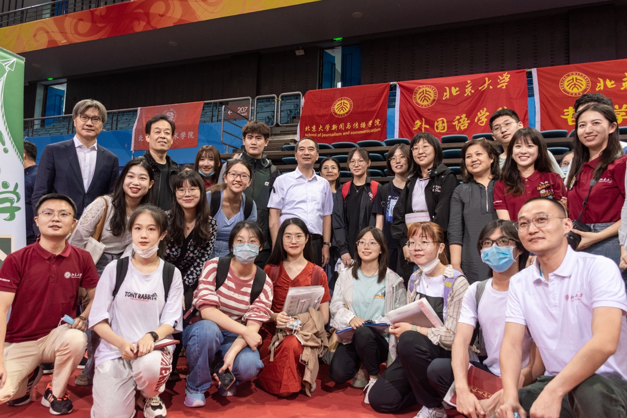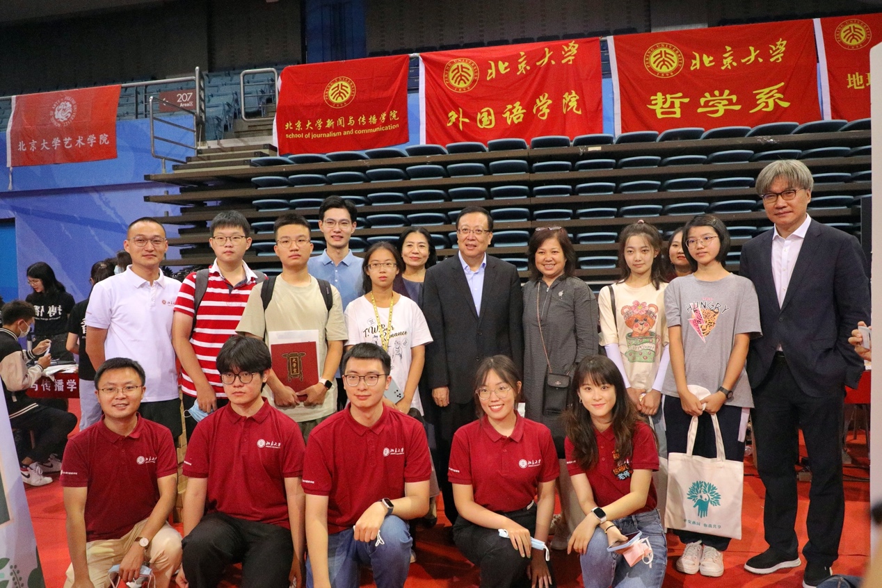 10点20分,校长龚旗煌,党委常委、副校长王博,党委副书记、副校长宁琦等校领导一行来到beat365平台唯一官网迎新接待站关心新生报到情况,亲切询问新生基本情况,鼓励新生尽快适应大学生活,努力学习,并与现场师生合影留念。