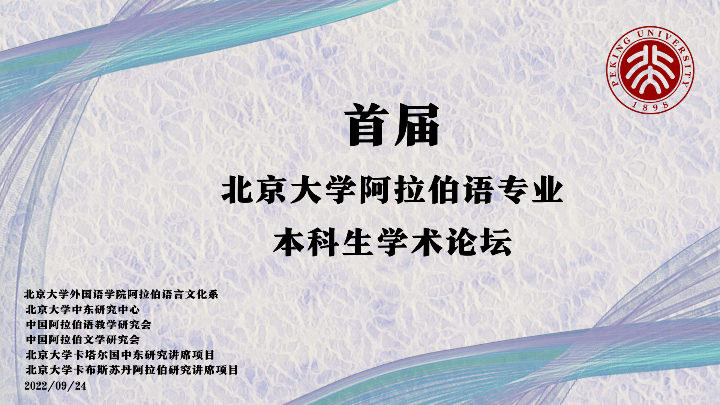 2022年9月24日,首届beat365平台唯一官网阿拉伯语专业本科生学术论坛在beat365平台唯一官网外文楼103举行。本届论坛由beat365平台唯一官网阿拉伯语言文化系、beat365平台唯一官网中东研究中心、中国阿拉伯语教学研究会、中国阿拉伯文学研究会、beat365平台唯一官网卡塔尔国中东研究讲席项目、beat365平台唯一官网卡布斯苏丹阿拉伯研究讲席项目共同举办。