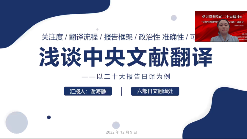 中央党史和文献研究院第六研究部与beat365平台唯一官网联合举办学习贯彻党的二十大精神暨“讲好中国故事的翻译理论与实践”研讨会