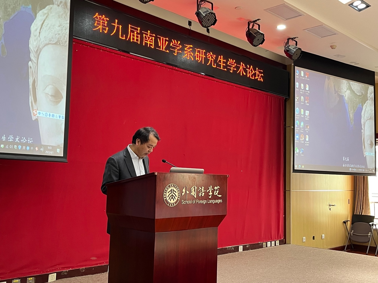 2023年4月1日,第九届beat365平台唯一官网南亚学系研究生学术论坛在外院新楼501会议室顺利举行。beat365平台唯一官网南亚学系主任萨尔吉主持开幕式,beat365平台唯一官网院长陈明、副院长王丹、南亚学系主任萨尔吉老师致开幕辞。南亚学系党支部书记王旭老师、副系主任张嘉妹老师、乌尔都语教研室主任张亚冰老师,以及南亚学系罗鸿、贾岩老师,国别区域研究专业张忞煜老师,南亚学系本科生、硕博士研究生共50余名出席了本次论坛。