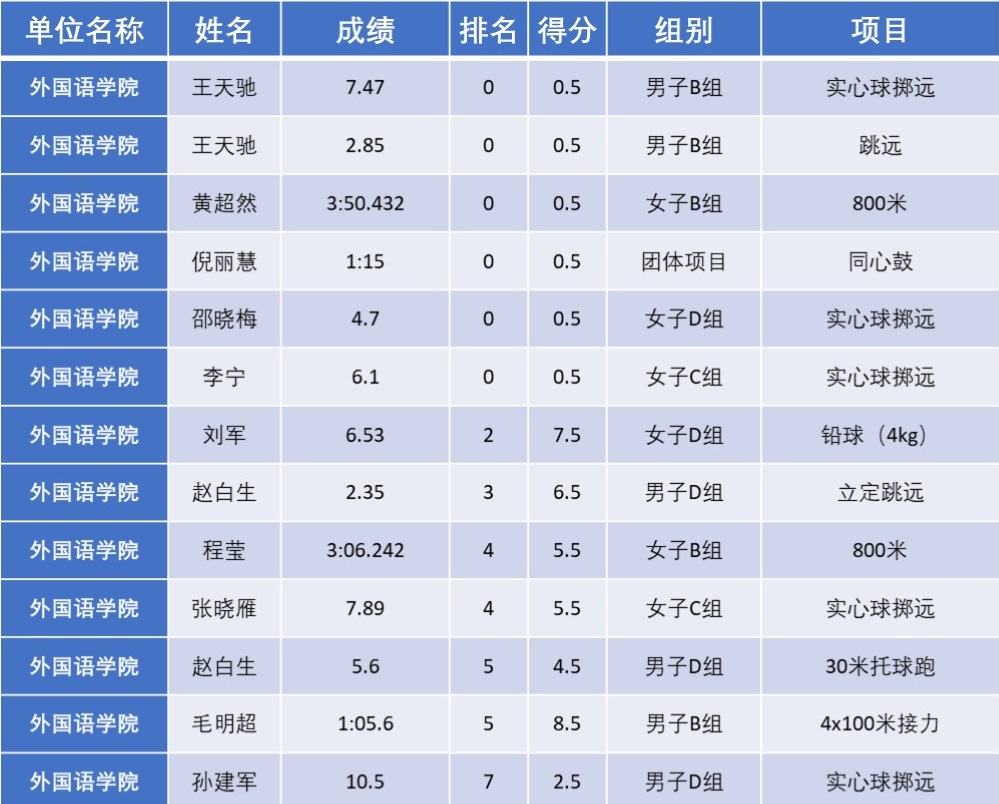 具体参赛及成绩请见下表: