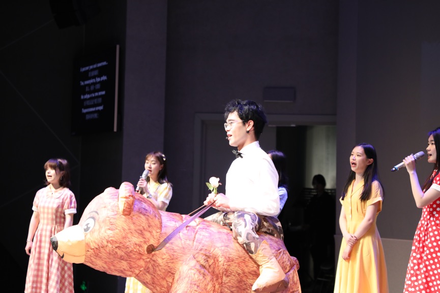 文化节后,百周年纪念讲堂内精彩继续。李莹厅中,精心准备的节目悉数亮场,同学们一展歌喉。光彩夺目的舞台上,有热情动感的韩国流行舞蹈,也有浪漫缠绵的法语独唱,有激情澎湃的德语版《国际歌》,也有悠扬嘹亮的《莫斯科郊外的晚上》俄语合奏,场下观众也在优美的歌声和旋律之中感受不同语言的艺术之美。