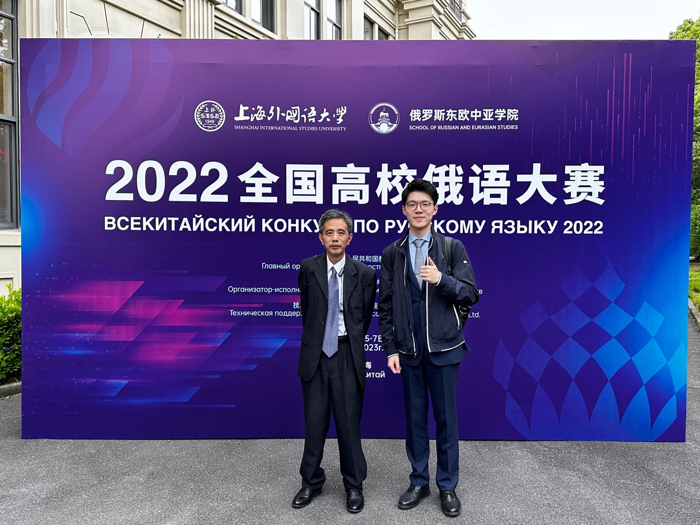 2023年5月5日至7日,由教育部国际合作与交流司主办、上海外国语大学承办的2022全国高校俄语大赛复赛、决赛在上海外国语大学松江校区顺利举办。beat365平台唯一官网俄语系2021级本科生徐瑾铭,经过初赛、复赛和决赛的多轮比拼,最终荣获低年级组第四名。