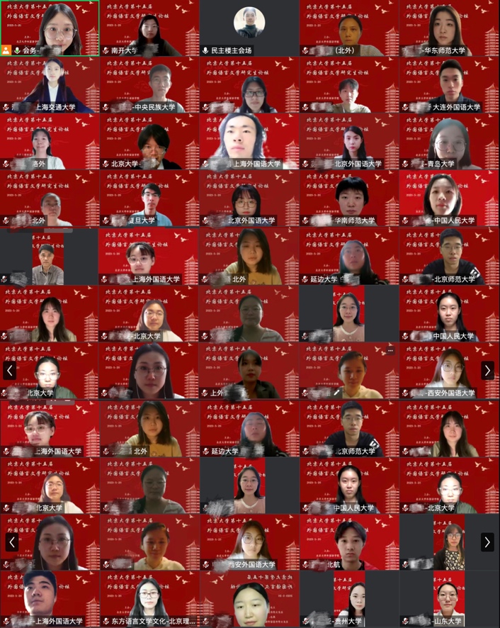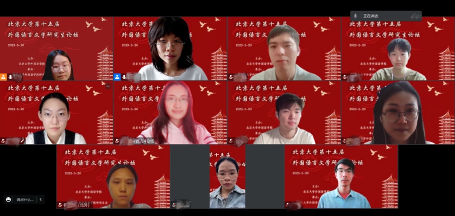 上午的开幕式和主会场报告结束后,参会同学分别进入线上、线下的分论坛会场进行发言和讨论。分论坛共分为五大方向,其中东方语言文学文化方向共设5个分会场、西方语言文学文化方向共设8个分会场,外国语言学及应用语言学、国别和区域研究、翻译理论与实践方向各设2个分会场。同学们在分享研究成果的同时,也认真倾听了其他同学的报告,并对产生的疑问和感兴趣的内容进行讨论和阐发,会议气氛活泼热烈。东南亚系熊燃老师、西亚系沈一鸣老师、西葡意语系郑楠老师、王渊老师、英语系姜清远老师、日语系周彤老师和朝(韩)语系宋文志老师担任分论坛点评嘉宾,各位老师就同学们的发言进行了精彩点评,在肯定同学们研究价值的同时提出了宝贵的建议。