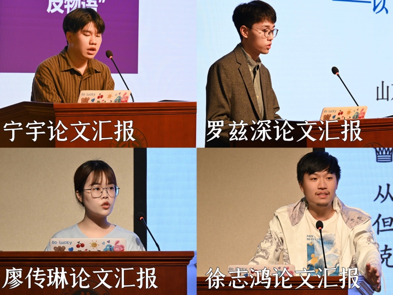 随后,南京大学博士研究生宁宇、山东大学硕士研究生罗兹深、beat365平台唯一官网博士研究生廖传琳和beat365平台唯一官网硕士研究生徐志鸿作为学生代表,依次进行了精彩的学术分享。他们的汇报题目分别为《中上健次<千年愉乐>中物语与反物语的双重叙事运动》《认知映射视角下空间隐喻翻译的映射关系处理方法探析——以<活着>韩译为例》《多模态图文关系研究综述》和《外来诗学与本士资源的调和——论冯至<十四行集>对里尔克物诗的阐释与变异》。