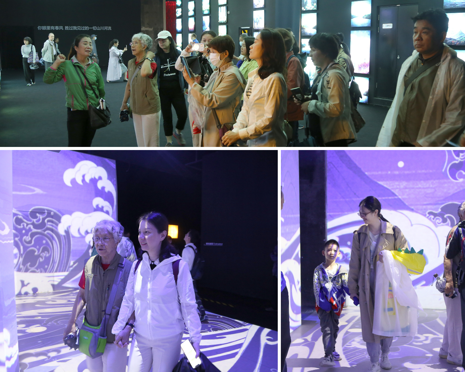 随后,老师们来到 “瞭仓数字艺术馆”。其前身为首钢铁粉储料仓,瞭仓即取自“料仓”读音,满载着工业属性的历史底蕴,又传递出数字艺术的视觉体验。老师们进入光影展厅,参观了“流动万象”沉浸式数字艺术展。该展览由“奔流”“曙光”“传说”“共生”“火·梦”等多个单元组成,围绕西山永定河文化,通过新媒体数字技术手段,将永定河的风采栩栩如生地展现出来。行走在132幅生态作品组成的艺术长廊中,通过浏览一幅幅人工智能生成的作品,老师们真切感受到了人类与机器关于“永定河生态和谐共生”的共同想象,对自然与人类的关系有了更为深入的思考。