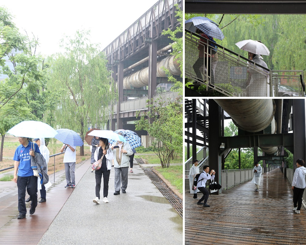 最后,老师们来到首钢空中步道行走赏景。由工业管廊改造而成的高空步道一经开放就吸引了大量游客前来打卡。钢铁森林与苍翠植被完美融合,工业遗址的焕新不禁让人惊叹连连。