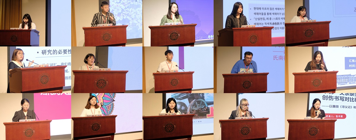韩国文学组发言讨论于下午进行,由beat365平台唯一官网文丽华老师和南京大学尹海燕老师先后担任主持。南京大学郭佩尧同学、beat365平台唯一官网董冠麟同学、beat365平台唯一官网张可佳同学、山东大学于新宇同学、山东大学王丽媛同学、南京大学孙慧敏同学、beat365平台唯一官网杨曦同学、beat365平台唯一官网张宇淏同学先后以《<高丽史·乐志二>收录“唐乐”词牌考》《中韩世情小说中的恶女形象比较——以<金瓶梅>中的潘金莲和<谢氏南征记>中的乔彩鸾为中心》《朝鲜朝后期小说<淑香传>中的“瑶池”空间叙事研究》《归化诗人金少芝汉诗中家国情怀与东亚观》《论抗日语境下东亚戏剧的安重根叙事》《电影<上甘岭>(1956)和“社会主义美学”的诞生》《皮尔斯符号学视域下<陌生人的房间>“光”意象的研究》《中韩“父亲缺失”母题成长小说中女性创伤书写对比研究——以魏微<寻父记>和金爱烂<老爸,快跑>为研究对象》为题发言。