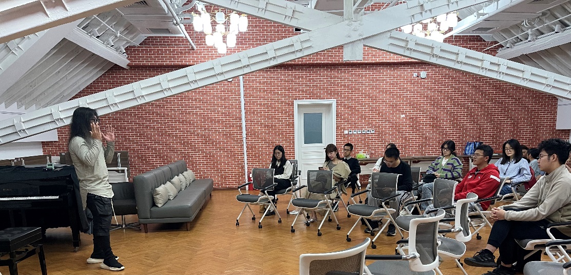 2023年10月15日傍晚,大提琴家宋昭老师应“外国语言与国际传播”项目邀请,来到燕园,在民主楼三层阁楼的师生空间为该项目的老师与同学带来一场题为“相对策画——在流量岔路书写人生”的分享会。宋昭老师开场先解释了采用“画”来替代“策划”中的“划”的原因与心意,随后在分享中将自己在音乐艺术、视觉设计、舞台策划、国际文化交流与文化传播等领域的经历与心得,以极富启发性的方式诚挚分享给在座的老师与同学们,其间还用大提琴“语言”演示了“表达”与“交流”。