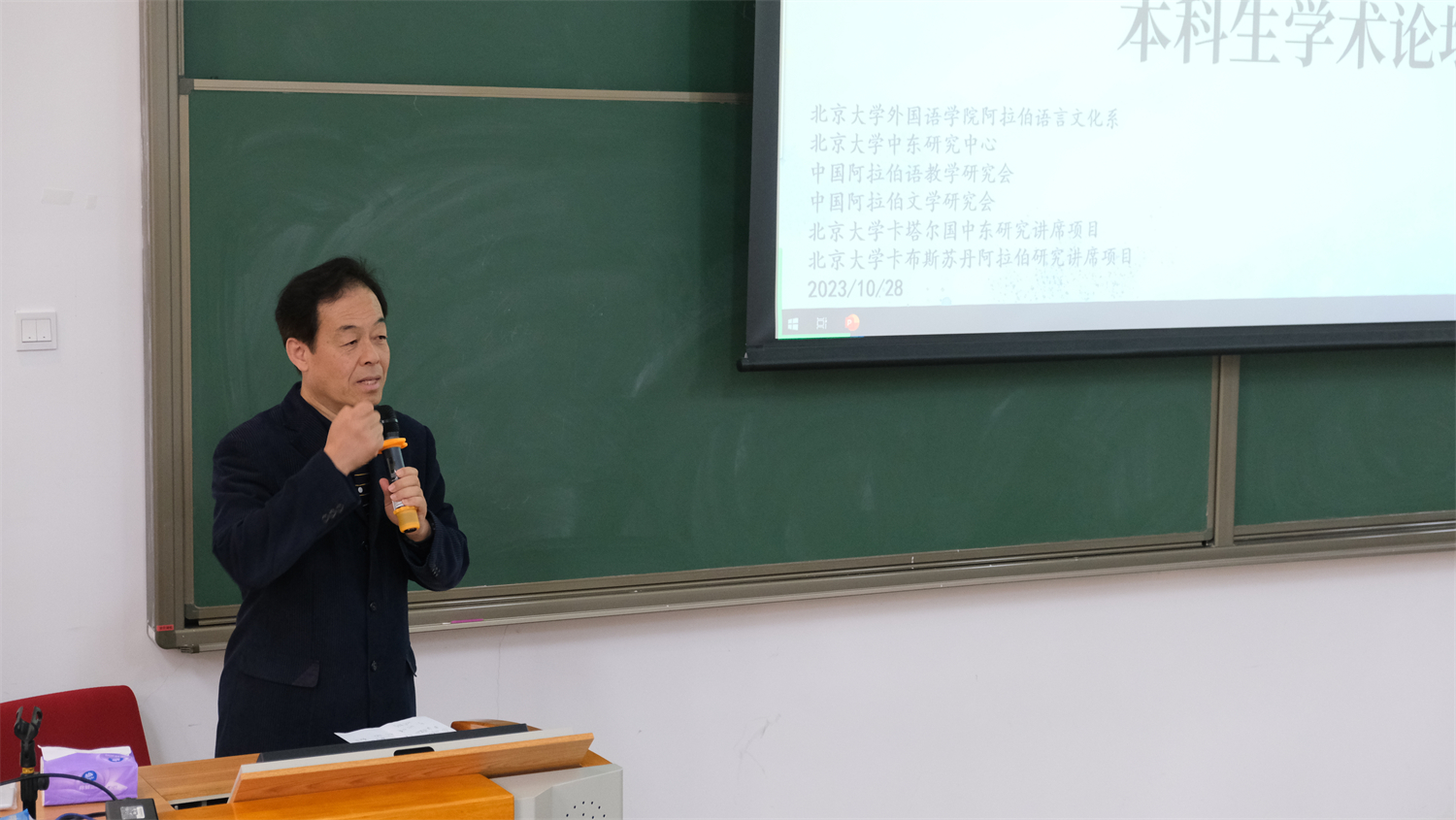 付志明教授在开幕致辞中指出,举办本科生学术论坛的目标既在于提升本科生的专业素养、丰富专业知识,又在于从低年级开始培养人格、锻炼策划组织能力。付老师强调,在当前“跨学科”热度不断上升的背景下,跨学科的重要前提条件在于扎实的本专业能力。他希望大家认真学好阿拉伯语,因为阿拉伯语将是大家今后工作的重要资源,阿拉伯世界或中东也很可能成为大家工作的地点或对象。