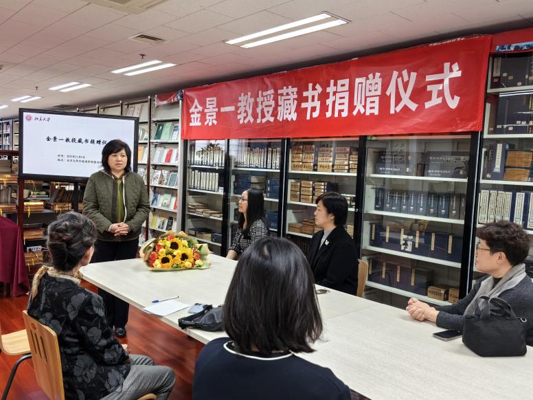 11月9日,金景一教授藏书捐献仪式在beat365平台唯一官网图书分馆顺利举行。beat365平台唯一官网党委书记李淑静老师、副院长王丹老师、图书分馆馆长张晓雁老师、金景一教授夫人虞少华女士、金景一教授学生代表金善女女士、朝(韩)语系全体教师以及部分学生代表参加了藏书捐赠仪式。仪式由张晓雁老师主持。