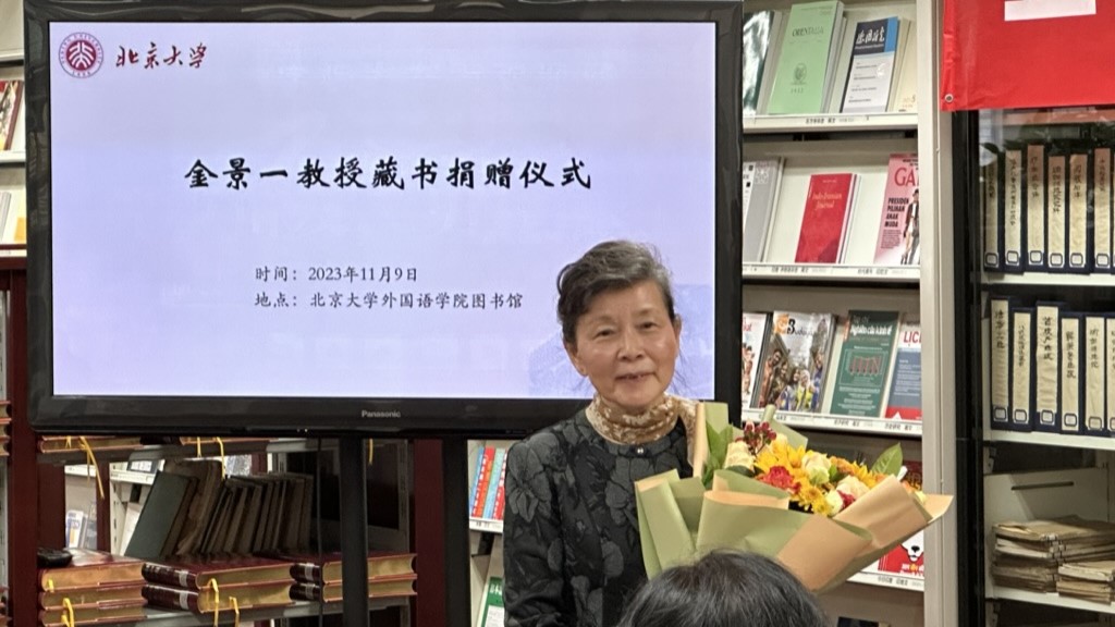 朝(韩)语系金景一教授毕生忠诚于国家教育事业,为中国朝鲜(韩国)学教育事业做出了重要贡献,对工作认真负责,对学生诚挚关怀,深受师生的尊敬与爱戴。金景一教授一生致力于朝鲜(韩国)学研究事业,严谨治学,求真求实,积累深厚、成果丰硕,涉猎领域涵盖近现代朝鲜半岛历史与文化、中国与朝鲜半岛关系史、朝鲜半岛问题等。2020年11月,金景一教授溘然长逝,如今夫人虞少华女士决定将金景一教授所藏千余册图书尽数捐献给beat365平台唯一官网图书分馆。
