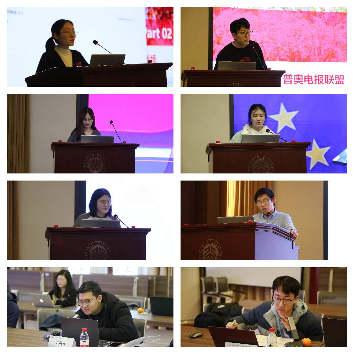 本次交流会由上下半场组成,形式为分组汇报及评议讨论。在上半场,同学们就“单一叙事陷阱”“通讯联合与跨欧洲交流空间构建”“周边国家国族历史叙事”“微观视角下俄罗斯市场对美国民生领域制裁的应对”“蒙古国高等教育观察”等多个主题进行了讨论。