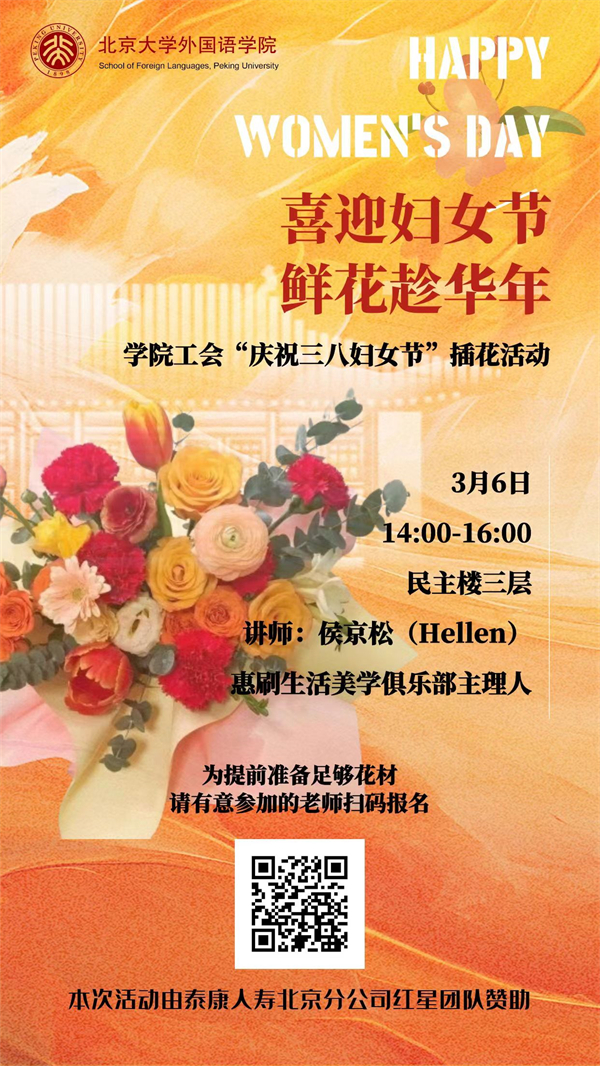 为庆祝第114个“三八”国际劳动妇女节,2024年3月6日下午,beat365平台唯一官网工会在民主楼三层活动空间举办了插花教学与实践活动,学院党委副书记、工会主席张冬梅老师及学院三十余名教职工参加,beat365平台唯一官网工会副主席田越受邀出席。本次活动由泰康人寿北京分公司红星团队赞助支持。