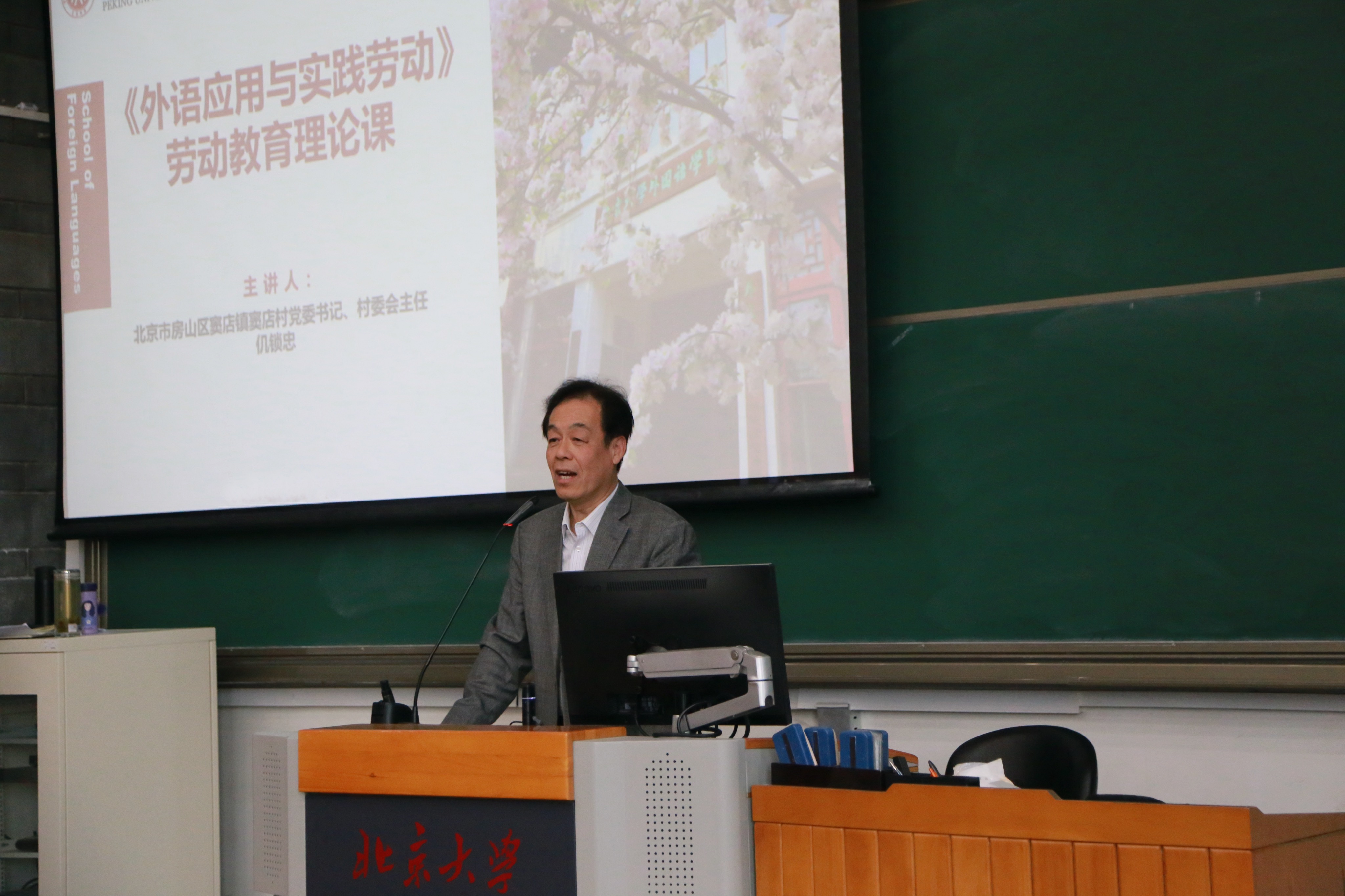 2024年3月15日,beat365平台唯一官网邀请北京市第十六届人大农村委员会副主任委员,房山区窦店镇窦店村党委书记、村委会主任仉锁忠结合全国两会精神讲授劳动教育课程。beat365平台唯一官网教务部教学办公室蒋菡、beat365平台唯一官网副院长付志明、党委副书记冯美娜、教务办工作人员和240余名学生参加本次课程,课程由付志明主持。