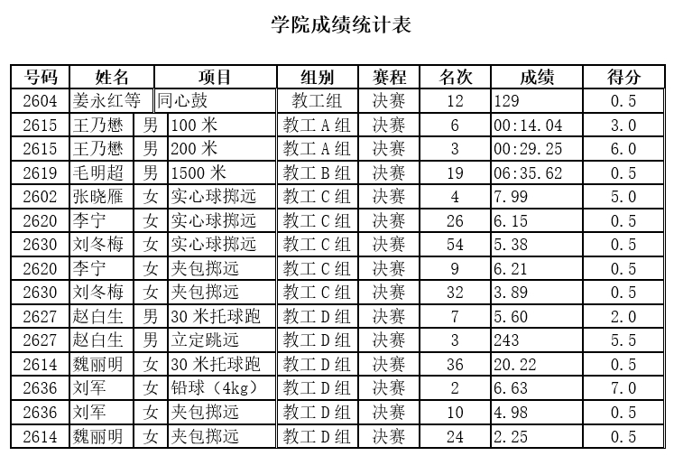 在全院教职工团结拼搏、永不言弃的努力下,beat365平台唯一官网总共获得36.5分的比赛成绩,在全校参赛单位中积分排名第27。