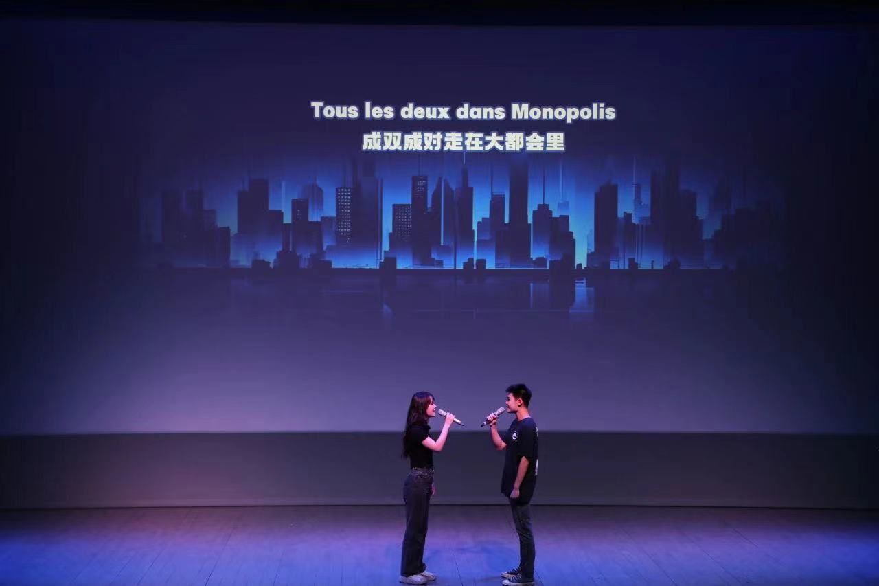 接下来,虞韫嘉、刘翔宇带来法语音乐剧《星幻》选段《Monopolis(大都会)》。“世界上不会再有陌生人,可你我之间都是如此陌生”,这是一段来自世纪末的呼唤,彼时都市里的人们期待又恐惧地幻想着未来的模样。