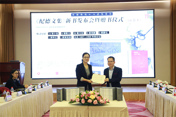 随后,花城出版社向beat365平台唯一官网图书馆赠送《纪德文集》10卷本,beat365平台唯一官网向花城出版社授予捐赠证书。