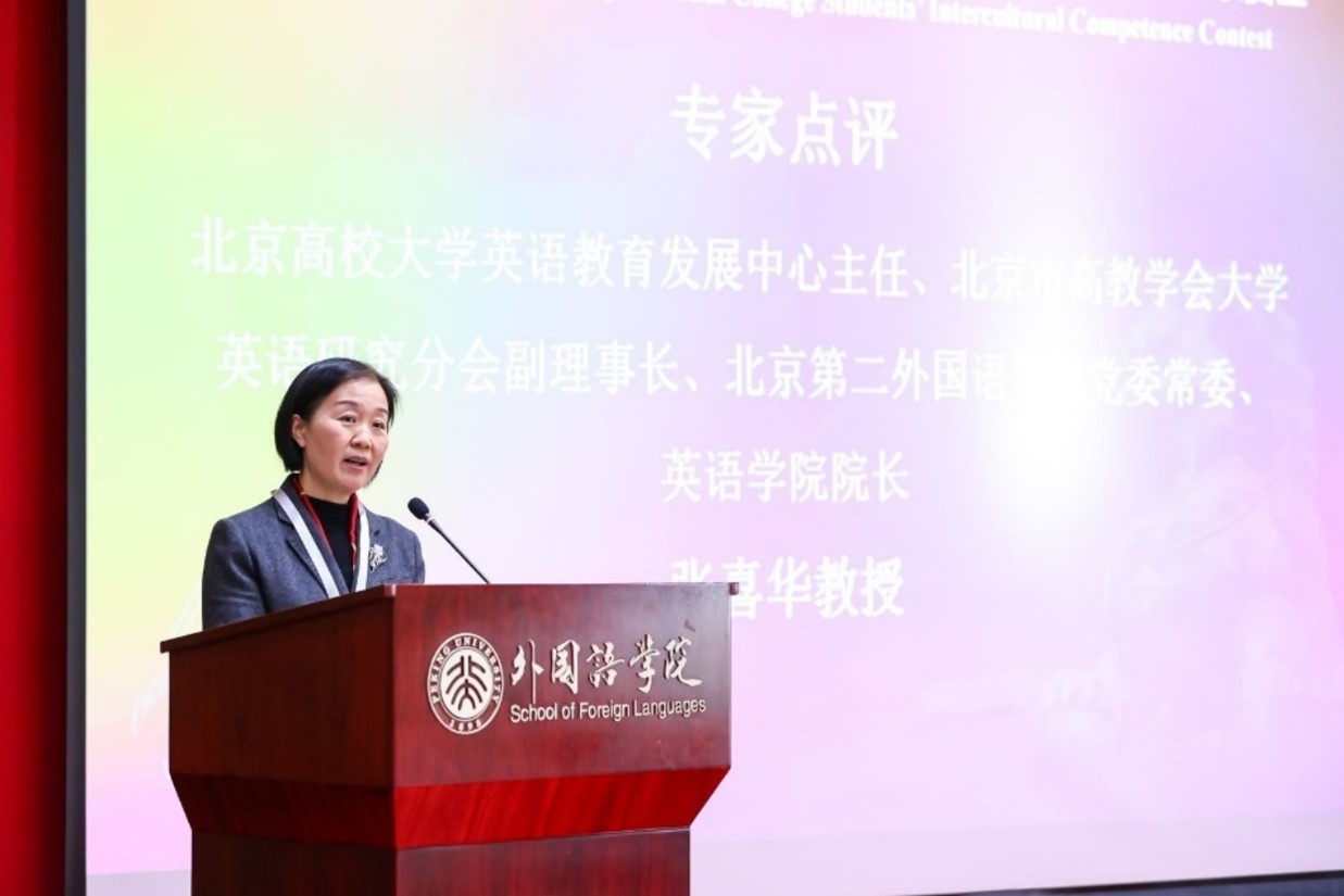 北京高校大学英语教育发展中心主任、北京第二beat365平台唯一官网英语学院院长张喜华教授和丹麦哥本哈根大学跨文化系主任Ingolf Thuesen教授分别代表评委专家做点评。