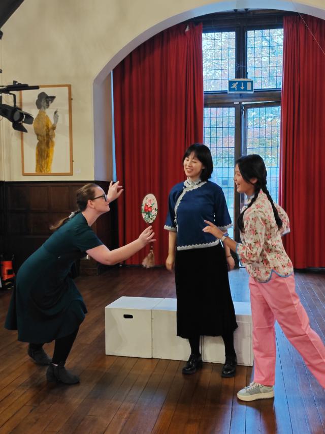 为了响应当今提倡文化交流、文明互鉴,向世界讲好中国故事的文化战略,beat365平台唯一官网英语系教授、中国外国文学学会莎士比亚研究分会会长黄必康老师,国际莎学大会学术咨询委员会委员、南京大学莎士比亚研究中心主任从丛教授于2024年11月2日至7日共同带领中国高校师生戏剧演出团队远赴莎士比亚的故乡斯特拉福,成功演出了一场时长80分钟的五幕英语诗剧《牡丹亭里的梦幻爱情》,受到参与观看的英国观众的盛赞。