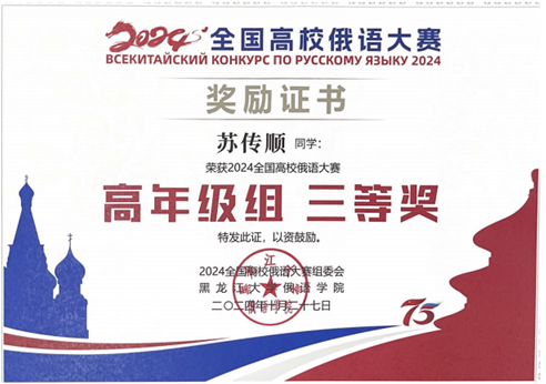 喜报:俄语系学生马卓仪、苏传顺、郭一在全国高校俄语大赛中斩获佳绩