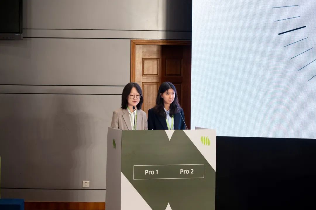 随后进行的半决赛中,北大组合对阵北京外国语大学,抽到的辩题为“是否应在学校普遍开设‘气候变化与可持续发展’课程”、持正方。陈雨亭、何海盈从气候变化这一人类面临的共同挑战出发,强调设置相关课程对激发学生环保意识、未来承担世界公民责任的积极作用。面对反方关于教育资源不足、学生压力过大等方面的论据,两位同学有力地指出,教育资源匮乏的地区,恰恰是更易遭受气候变化带来的灾难性后果威胁的地区,而灵活多样的学习形式则可有效缓解过高的课业压力。在辩论中,北大辩手更引用成语“滴水成海”,论证课程学习体量虽小却意义重大,呼应本方立场。在这场强强对话中,双方辩手唇枪舌剑,有理有据、有来有回,以极高的德语水平与出众的思辨能力,共同呈现了一场精彩的辩论。最终,北大组合略胜一筹,得以进入最终的决赛。