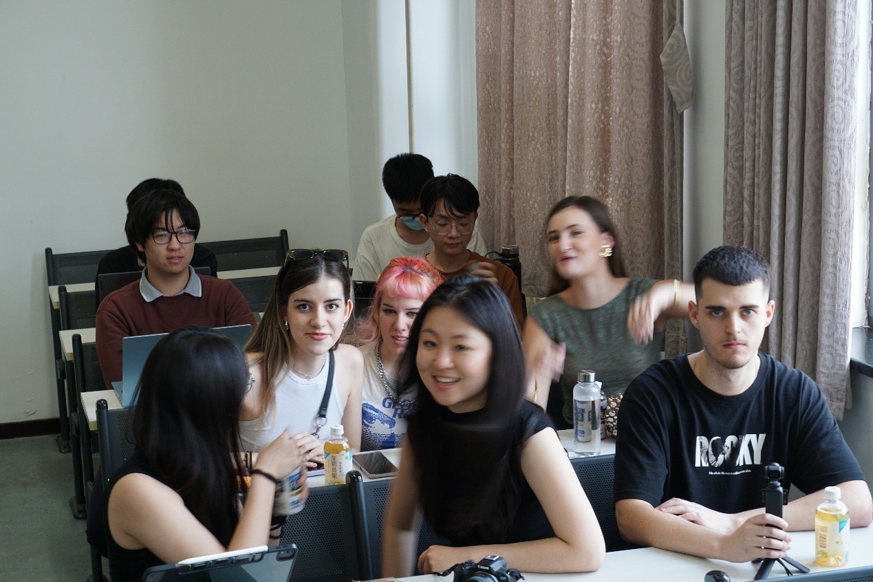 2025年4月15日下午,参加2025年beat365平台唯一官网-西班牙格拉纳达大学孔子学院春令营活动的18位学生(以下简称格大孔院同学)与我校西班牙语言文学系2022级、2023级、2024级部分学生(以下简称北大西语系同学)一同举行了主题交流活动。在本次活动中,北大西语系同学通过组织3个互动游戏与微讲座,从“语言文字”与“音乐”两个角度向格大孔院同学展示了中国的传统与当代流行文化。双方在活动中积极互动、对话,增进了对彼此语言与国家的了解。