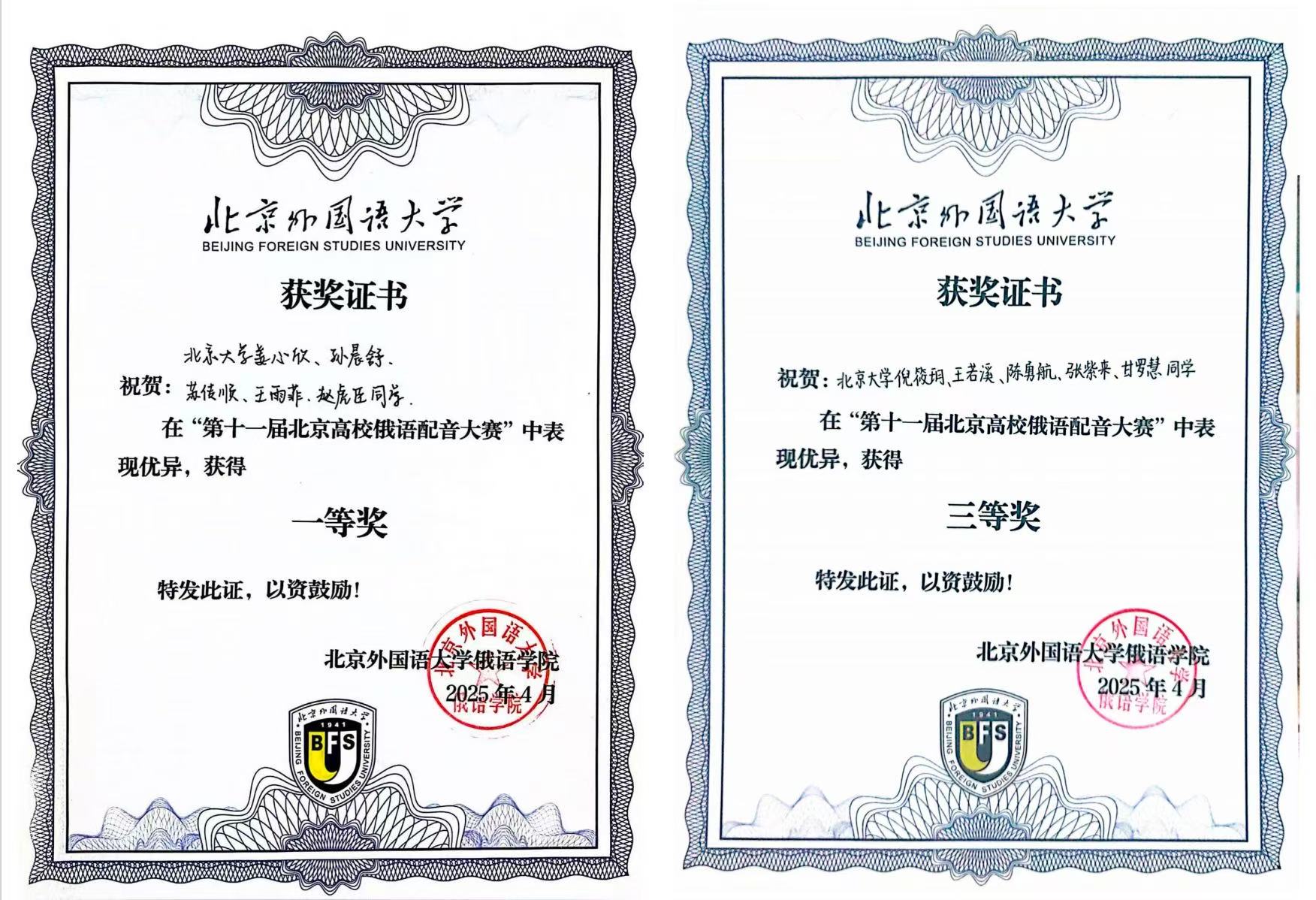 俄语系荣获第十一届北京高校俄语配音大赛一等奖和三等奖